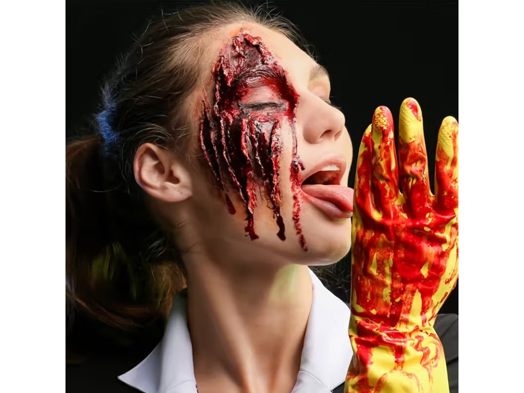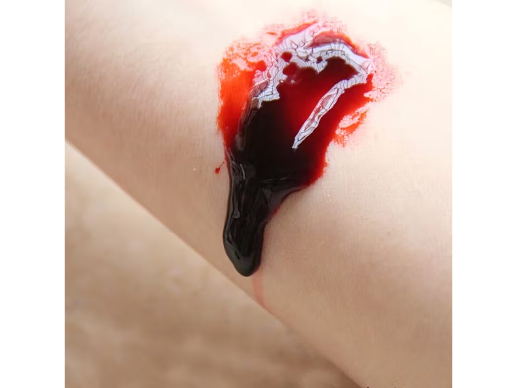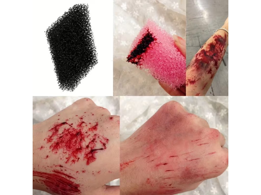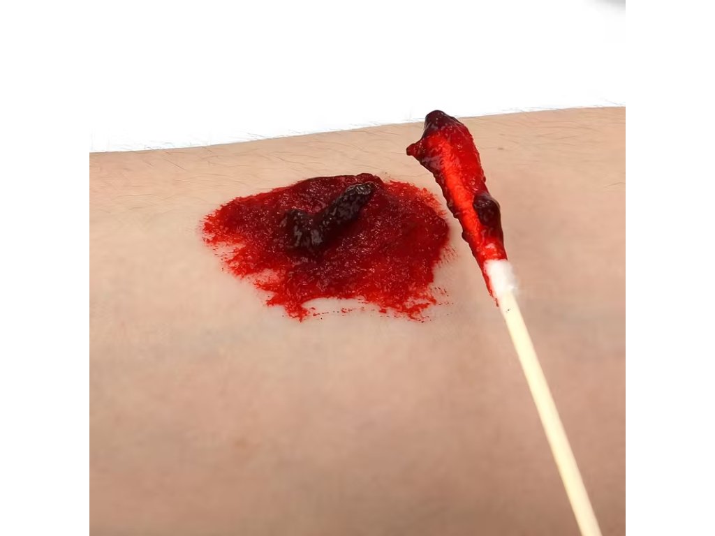 Cvičná imitace krve s houbičkou pro nácvik první pomoci