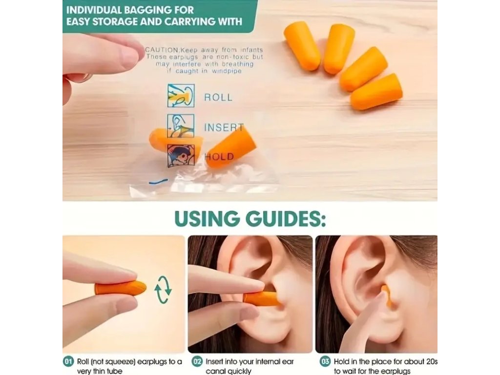 Pěnové špunty do uší 10× – měkké slow-rebound, individuálně balené (pro spaní a cestování)