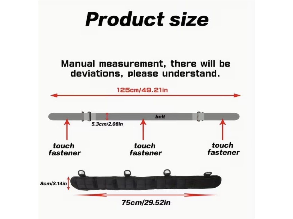 Nastavitelná délka zajišťuje pohodlné nošení pro různé obvody pasu. Díky svému designu je vhodný pro použití při lovu, turistice, tactical výpravách nebo jako všestranný outdoorový doplněk.