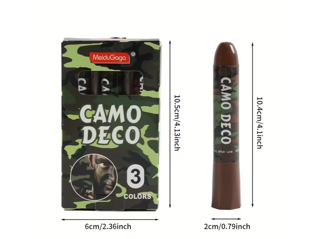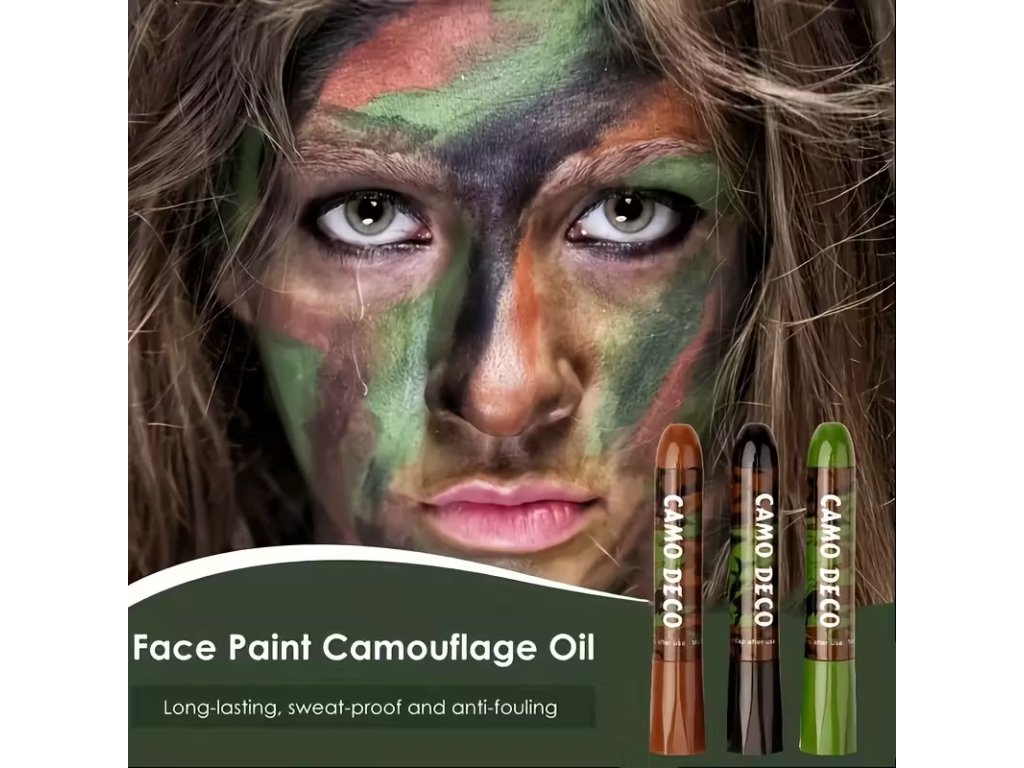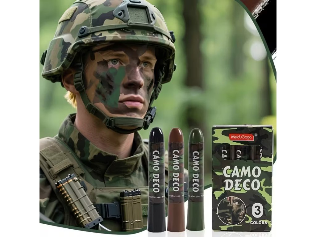 Maskovací tyčinka – 3barevná kamufláž na obličej (kompaktní, venkovní a tréninkové použití)