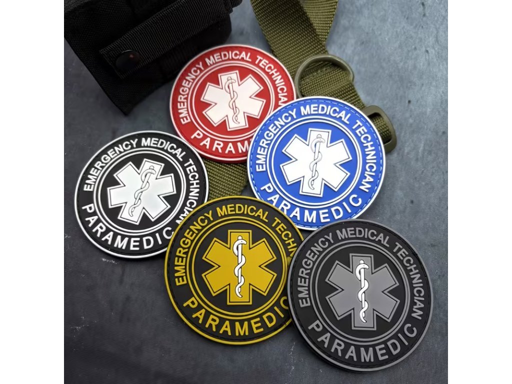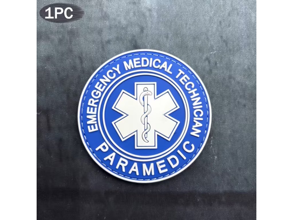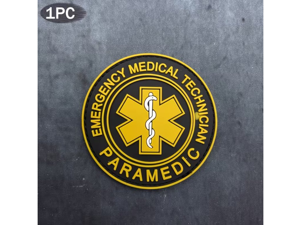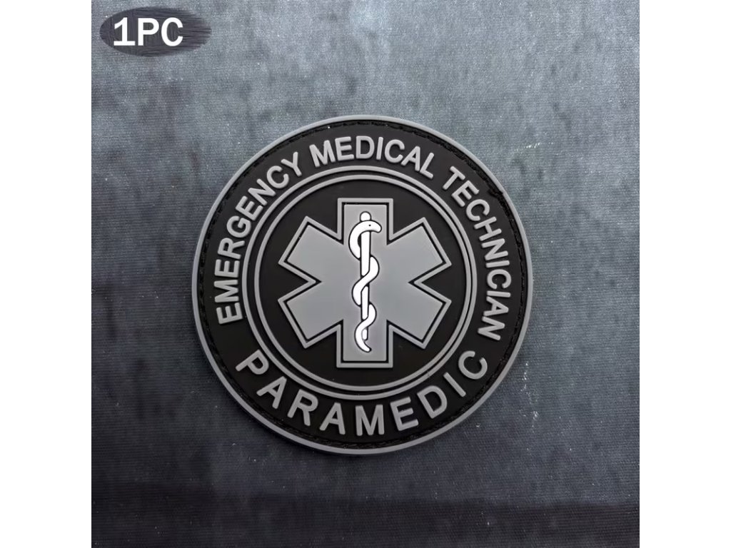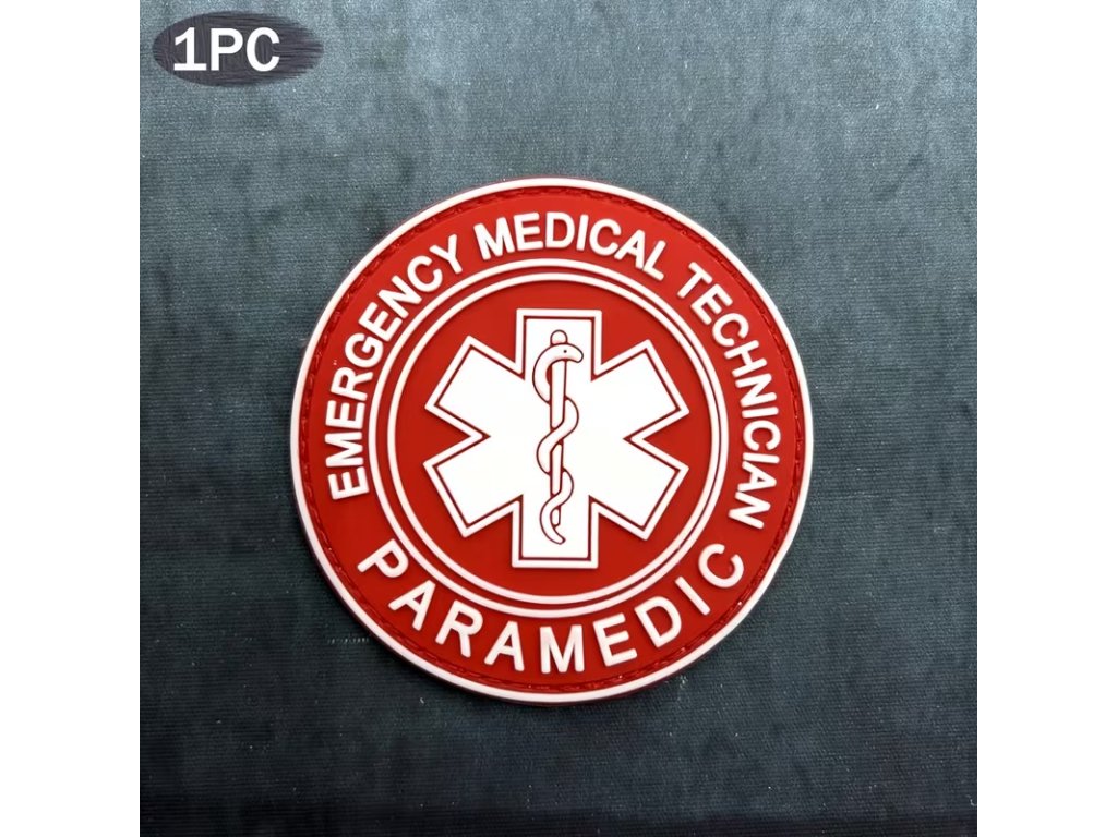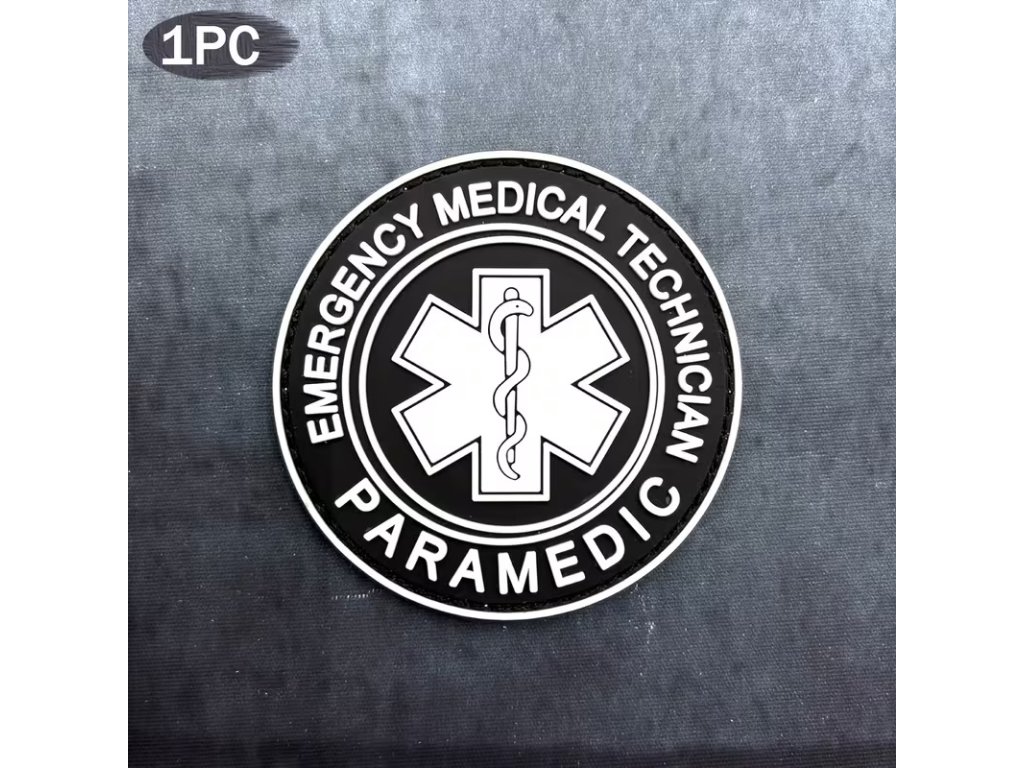 PVC nášivka „EMS - Paramedic“ – kulatá, reflexní prvky, hook & loop