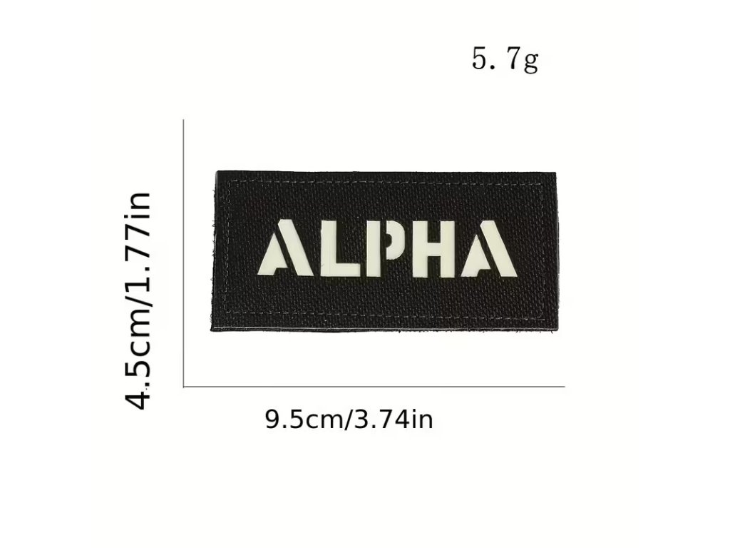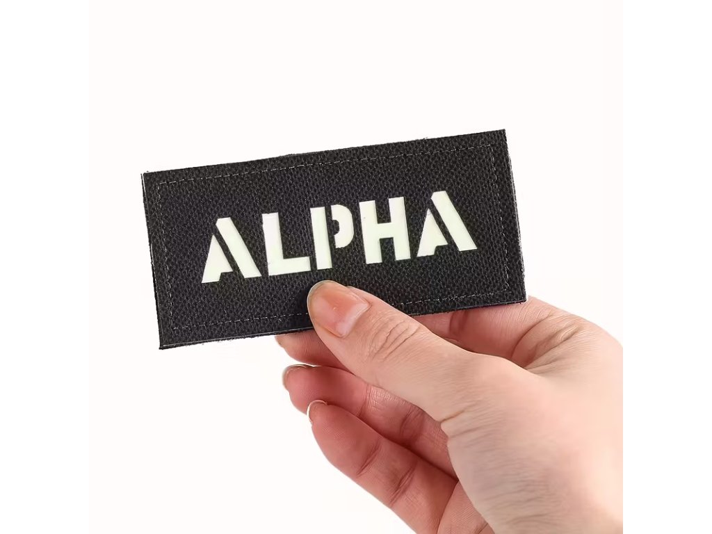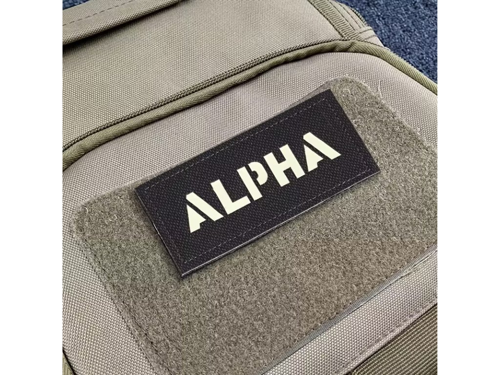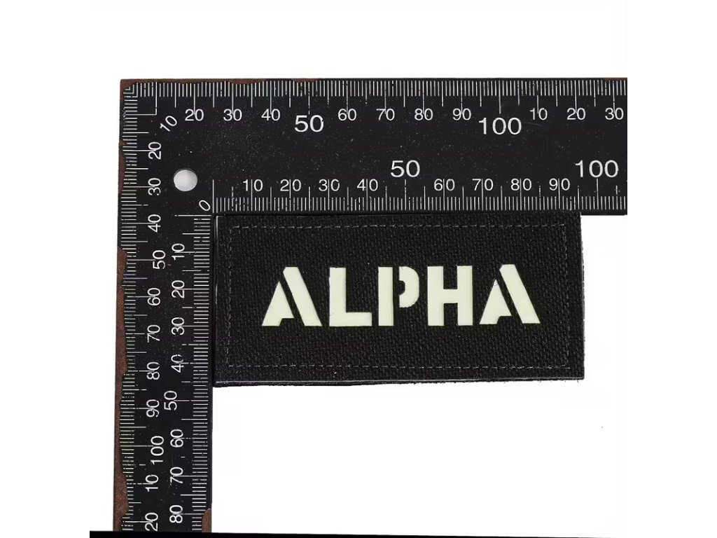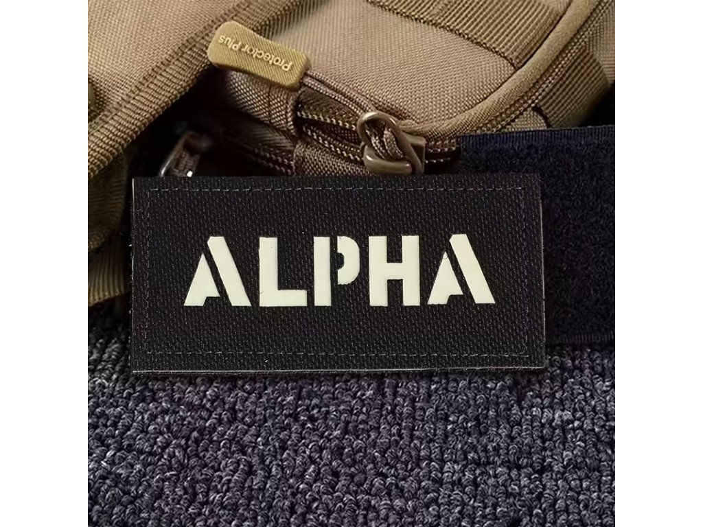 Svítící „ALPHA“ patch/nášivka s páskem na suchý zip – glow-in-the-dark