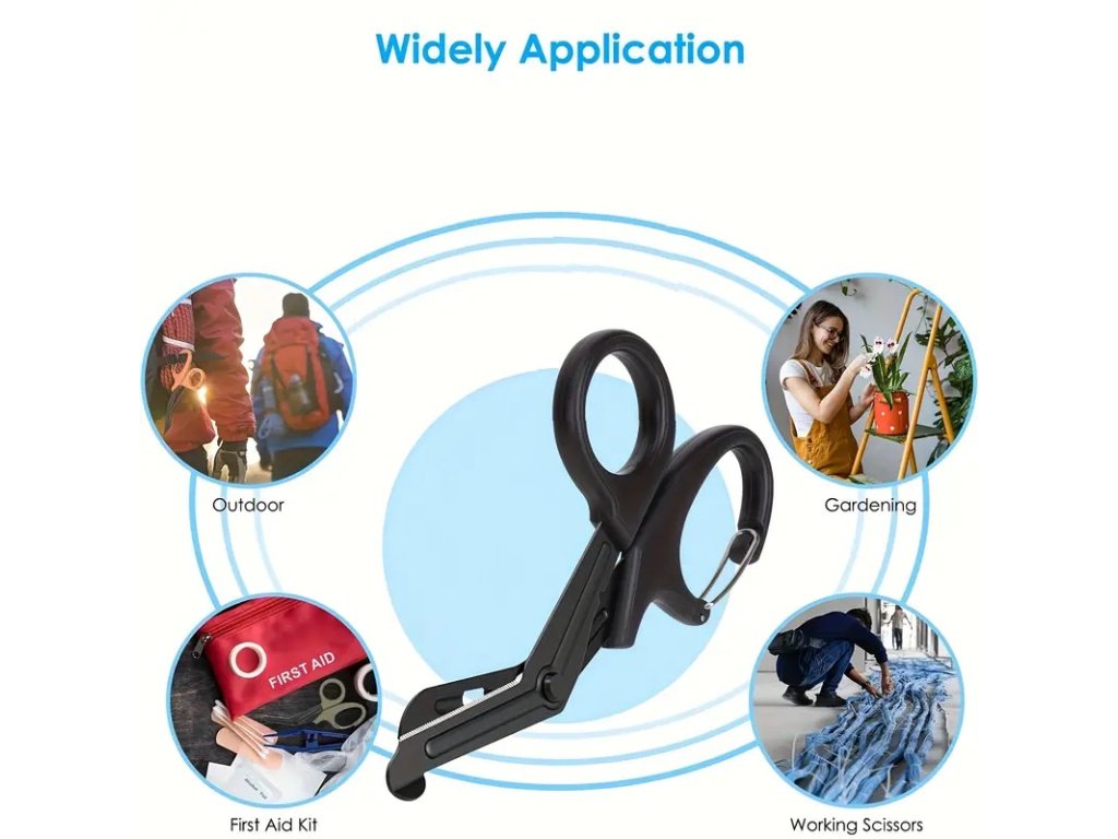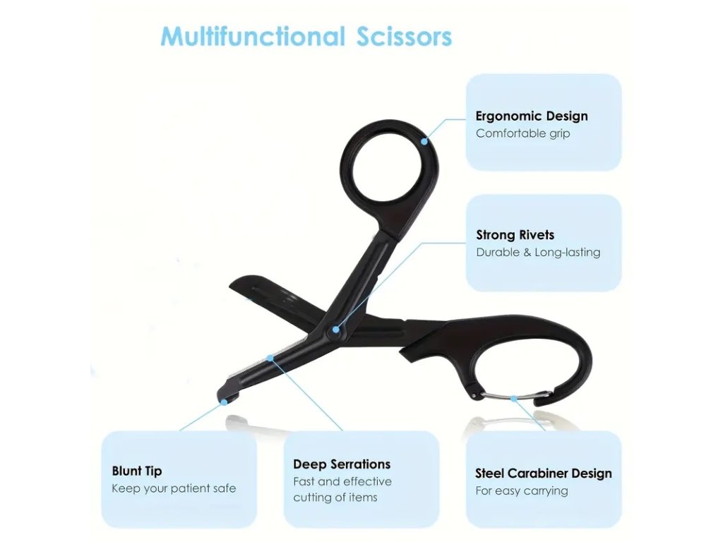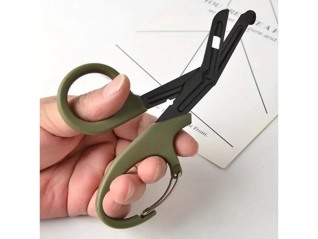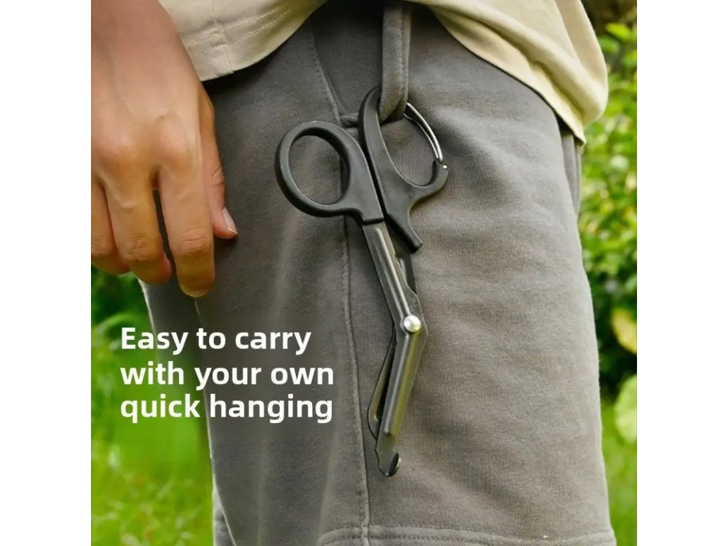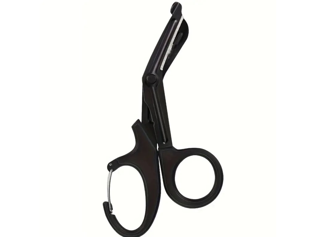 Profesionální záchranářské nůžky vhodné na stříhání obvazového materiálu, oděvů, bezpečnostních pásů s karabinou.