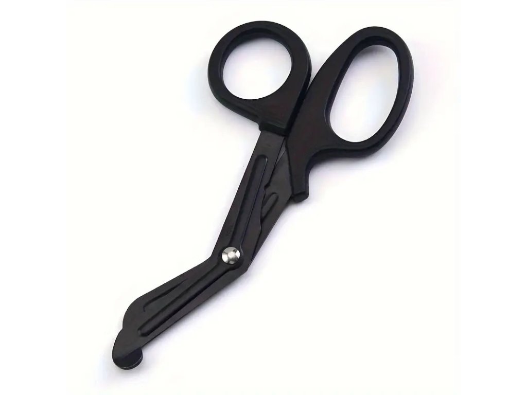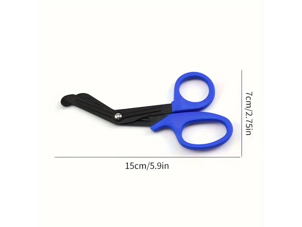 Záchranářské nůžky s karabinou vhodné na stříhání obvazového materiálu, oděvů, bezpečnostních pásů atd.