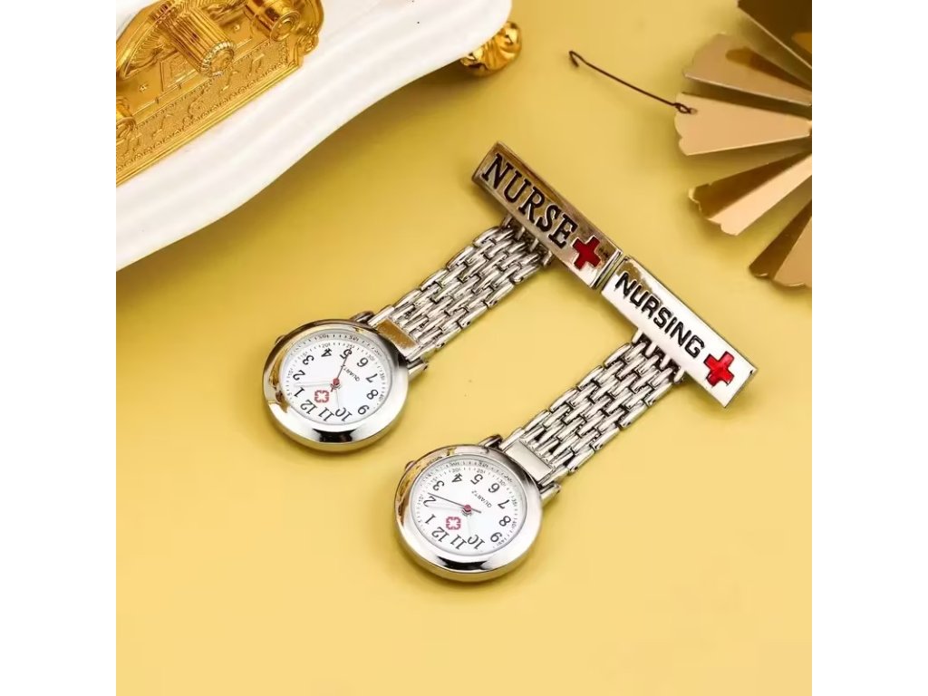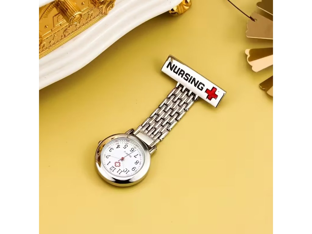 Analogové hodinky pro sestry a zdravotníky – brož spona / FOB design