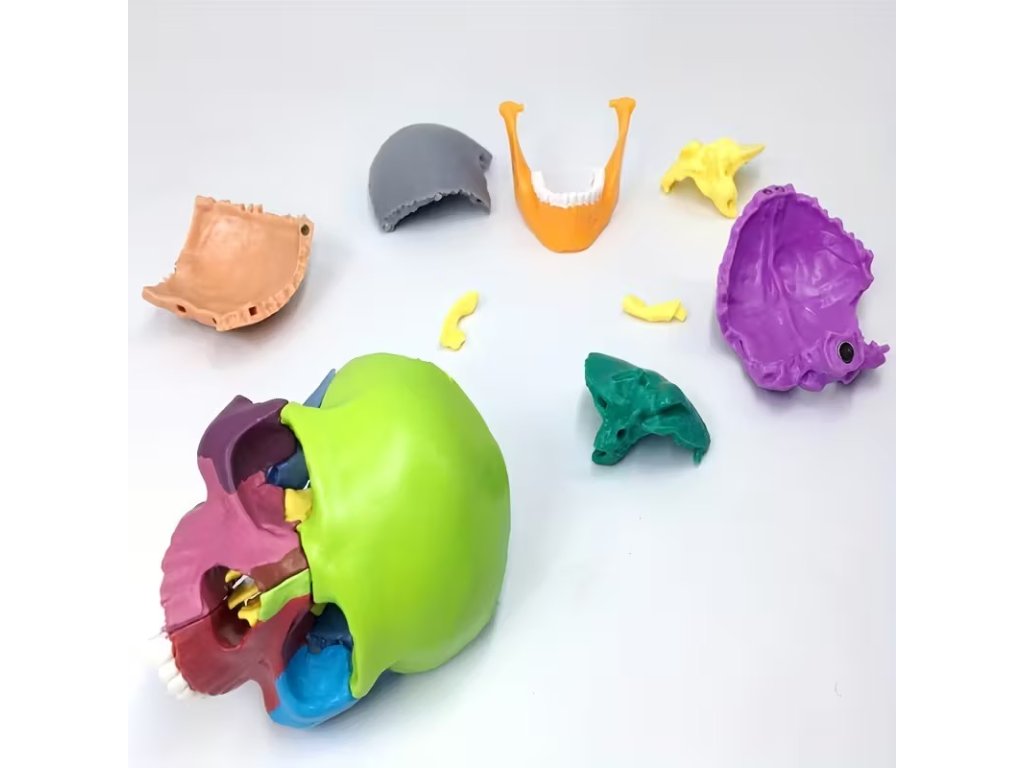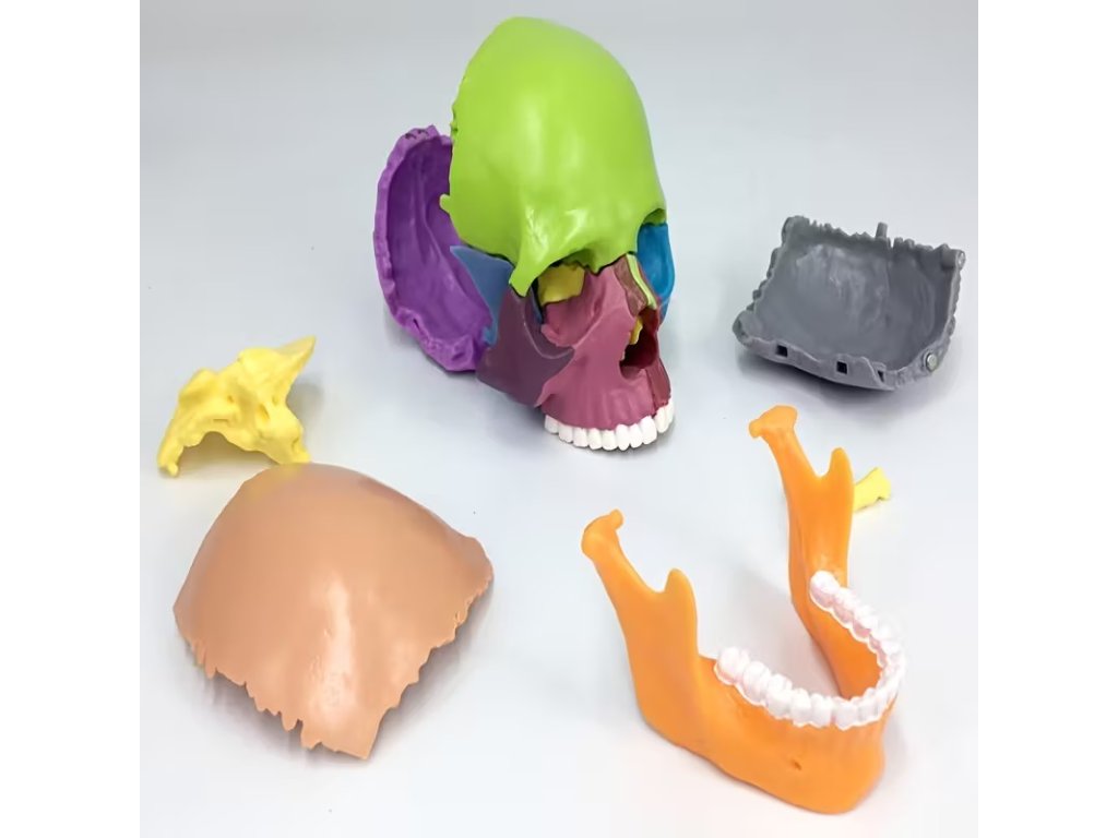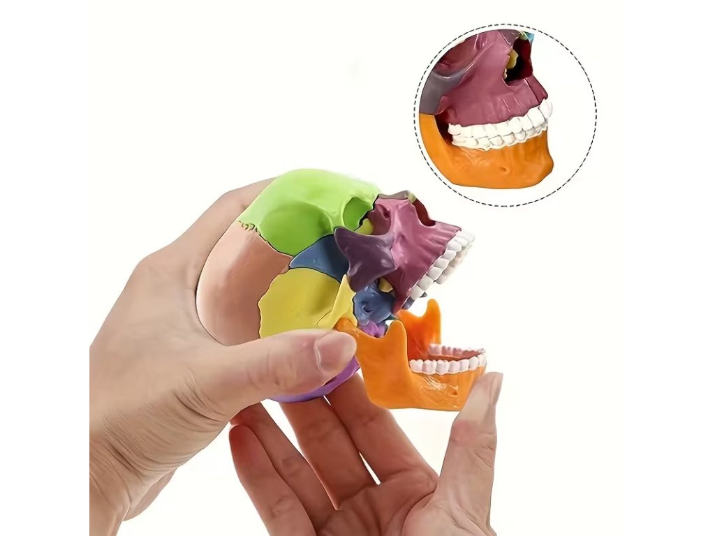 Anatomický model lidské lebky – 15dílný barevný mini model pro výuku anatómie