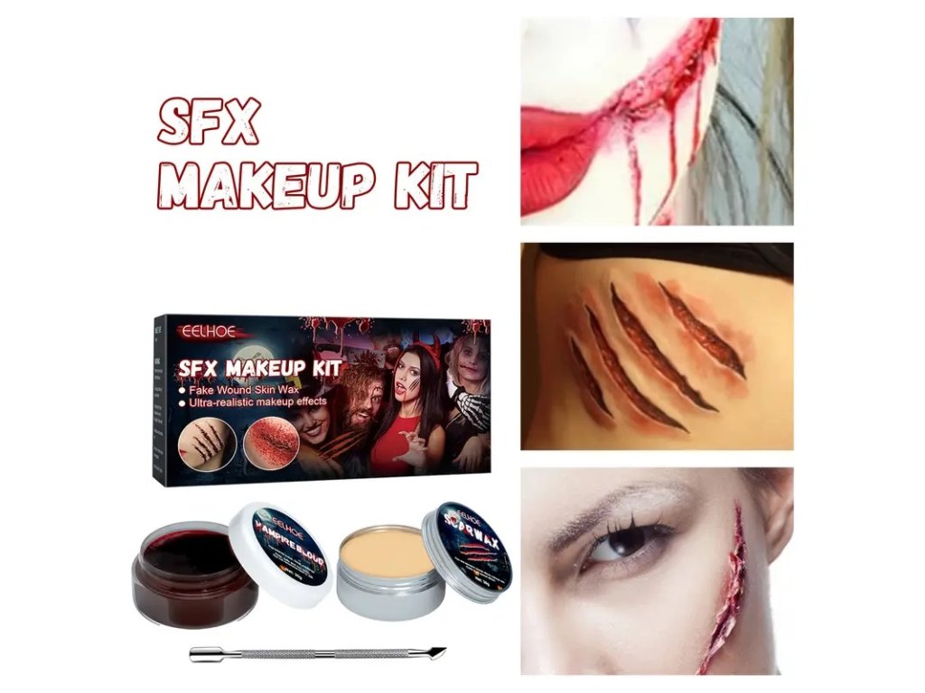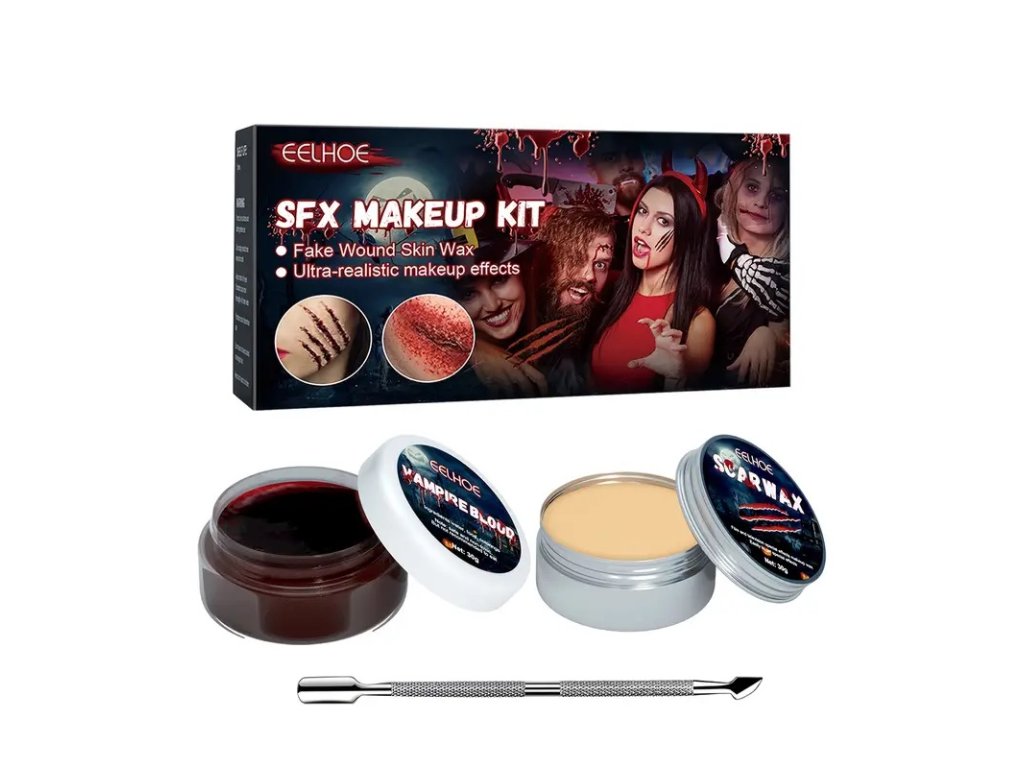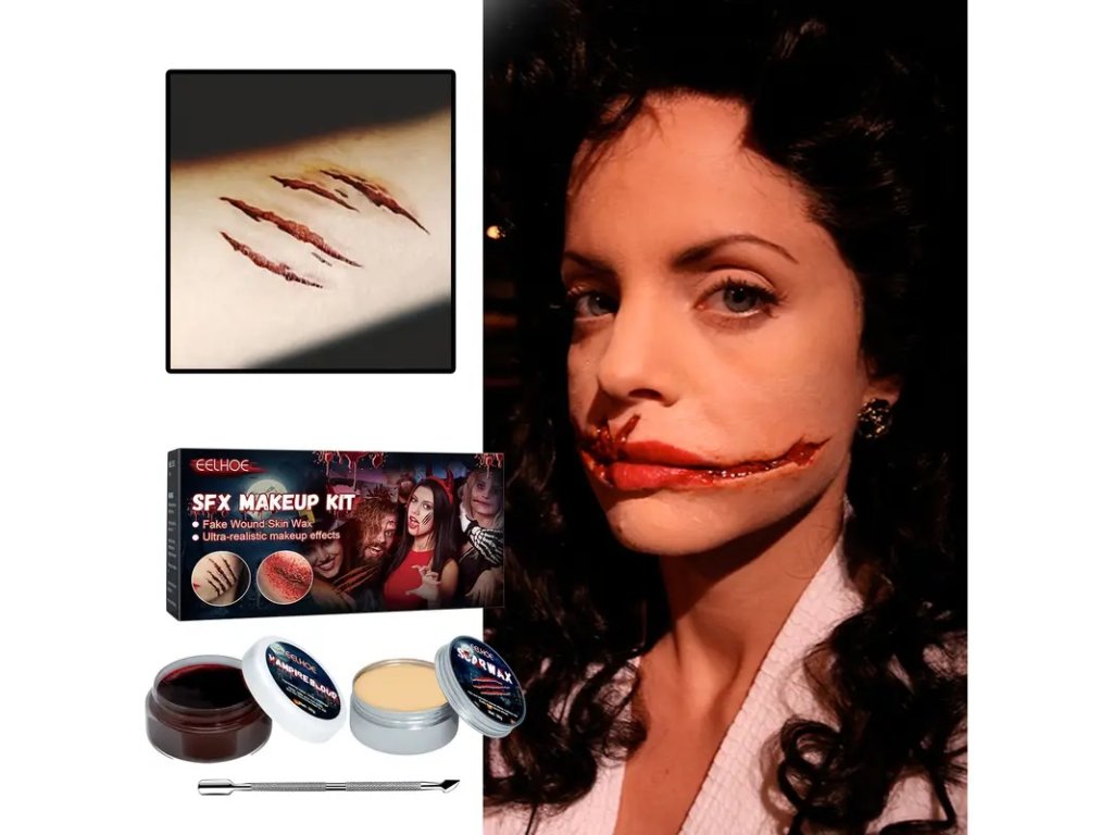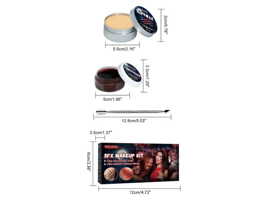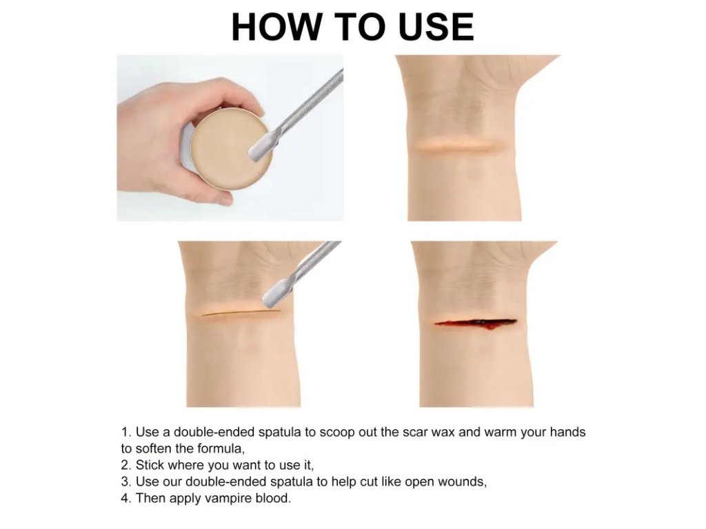 Kompatibilita: funguje s modelovacím voskem, latex/silikon protetikou a obvazovým materiálem