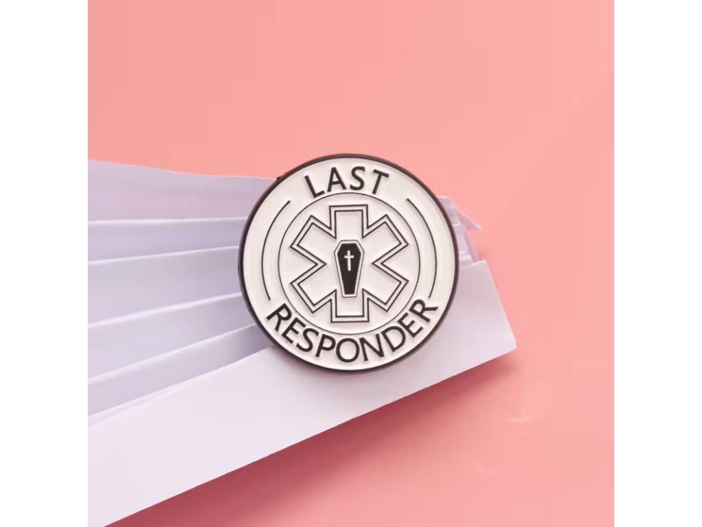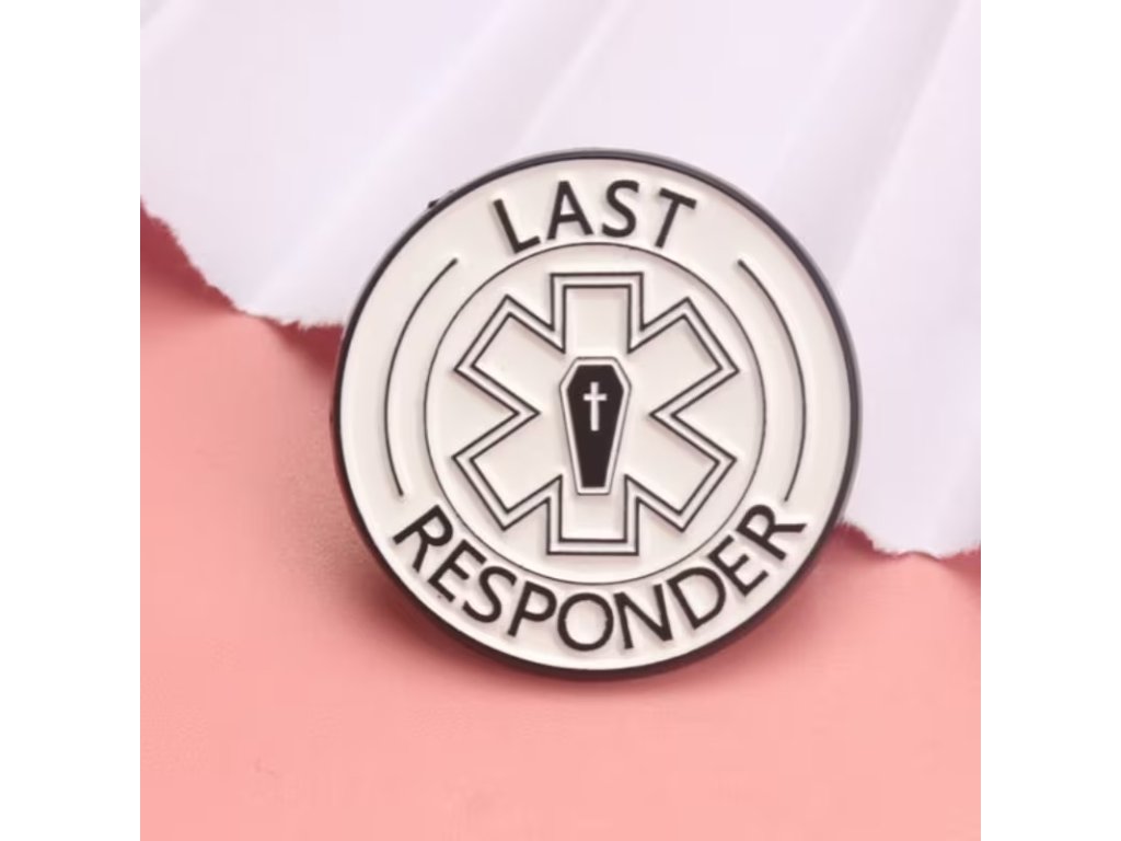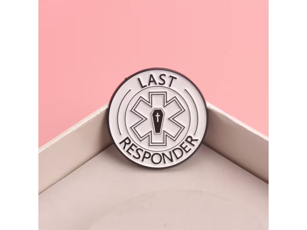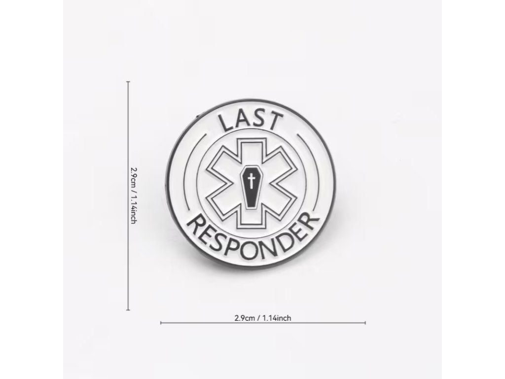 Kovový smaltovaný odznak Last Responder s motivem hvězdy života a výrazným černo‑bílým designem.