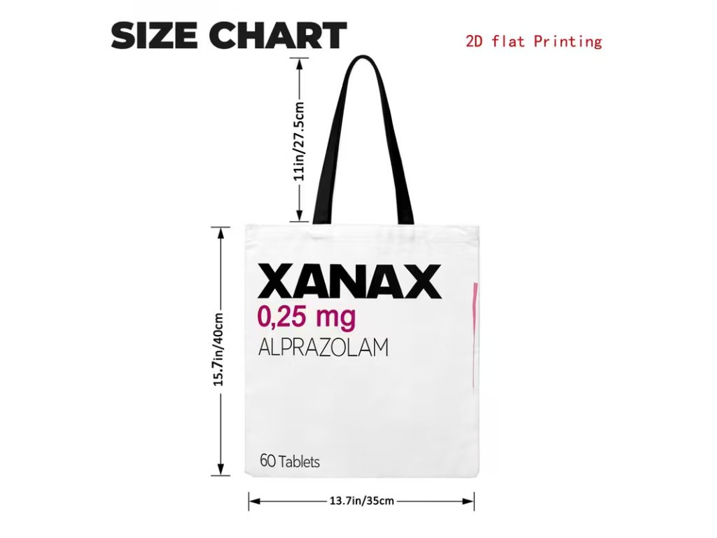 Tato stylová tote taška s tematickým potiskem Xanax přináší spojení originality a praktičnosti. Vyrobena z odolného materiálu, ideální pro každodenní použití i jako dárek.
