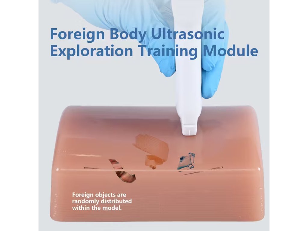 Ultrazvukový tréninkový blok – identifikace cizích těles (TPE) je realistická výuková pomůcka pro studenty medicíny a zdravotnické pracovníky. Umožňuje nácvik ultrazvukového vyšetření a detekce drobných cizích těles uložených v měkkých tkáních.