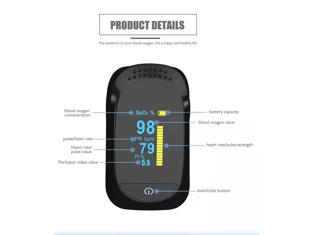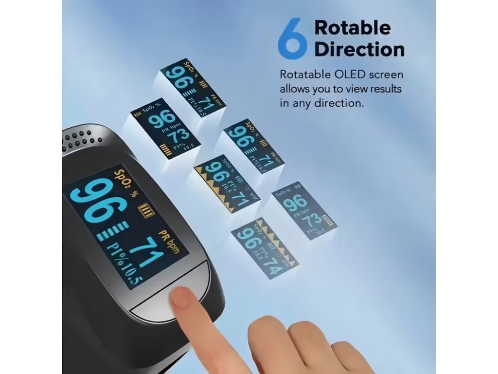 Praktický prstový pulzní oxymetr určený k orientačnímu sledování saturace kyslíkem (SpO₂) a tepové frekvence. Lehká konstrukce dobře drží na prstu, OLED displej zobrazuje hodnoty přehledně i při horších světelných podmínkách. Jednoduché ovládání jedním tlačítkem, rychlá odezva měření, automatické vypnutí pro úsporu baterie. Vhodné pro domácí použití, školy, kurzy první pomoci či sportovní rekonvalescenci.