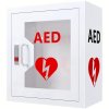 Nástěnná interiérová skříňka pro uložení AED s pružinovým zámkem (plomba). Kovový úložný box pro většinu značek AED...
