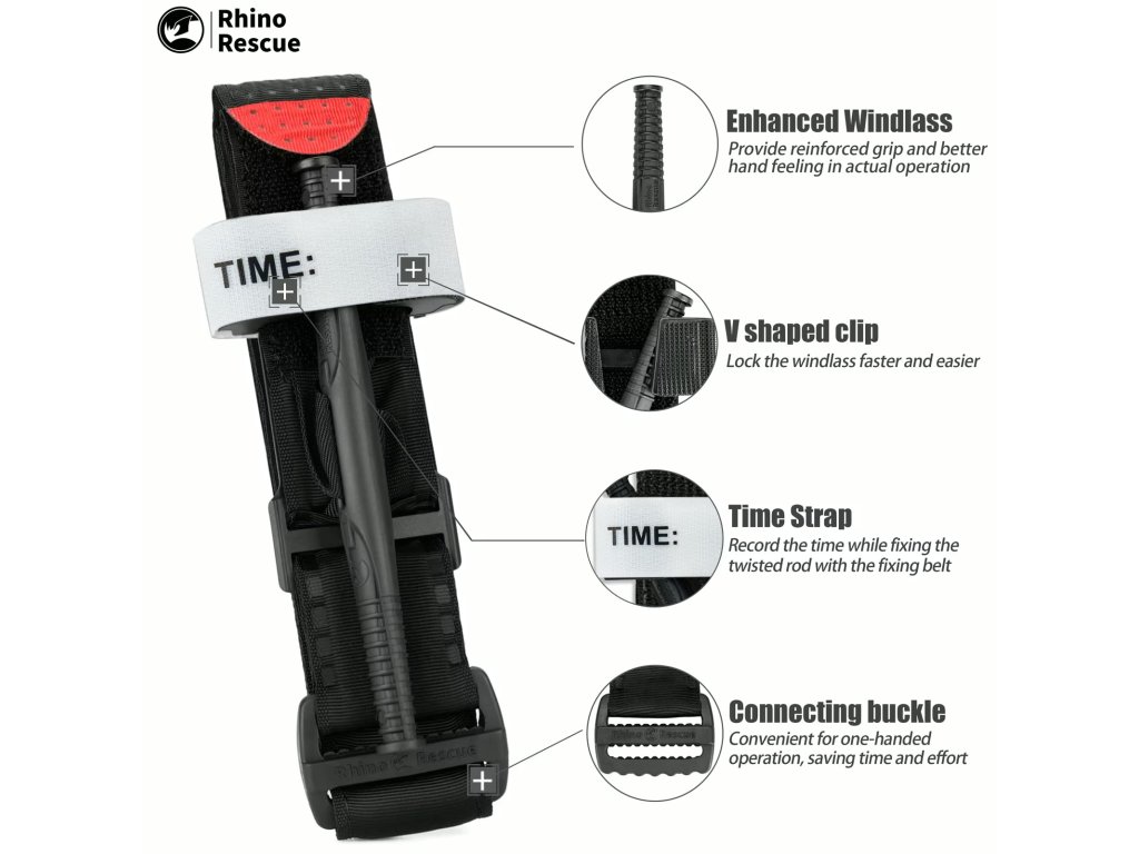 Rhino Rescue Tourniquet je špičkové taktické škrtidlo navržené pro okamžité zastavení život ohrožujícího končetinového krvácení. Díky své konstrukci umožňuje aplikaci jednou rukou, což je klíčové, pokud se zraněný musí ošetřit sám.