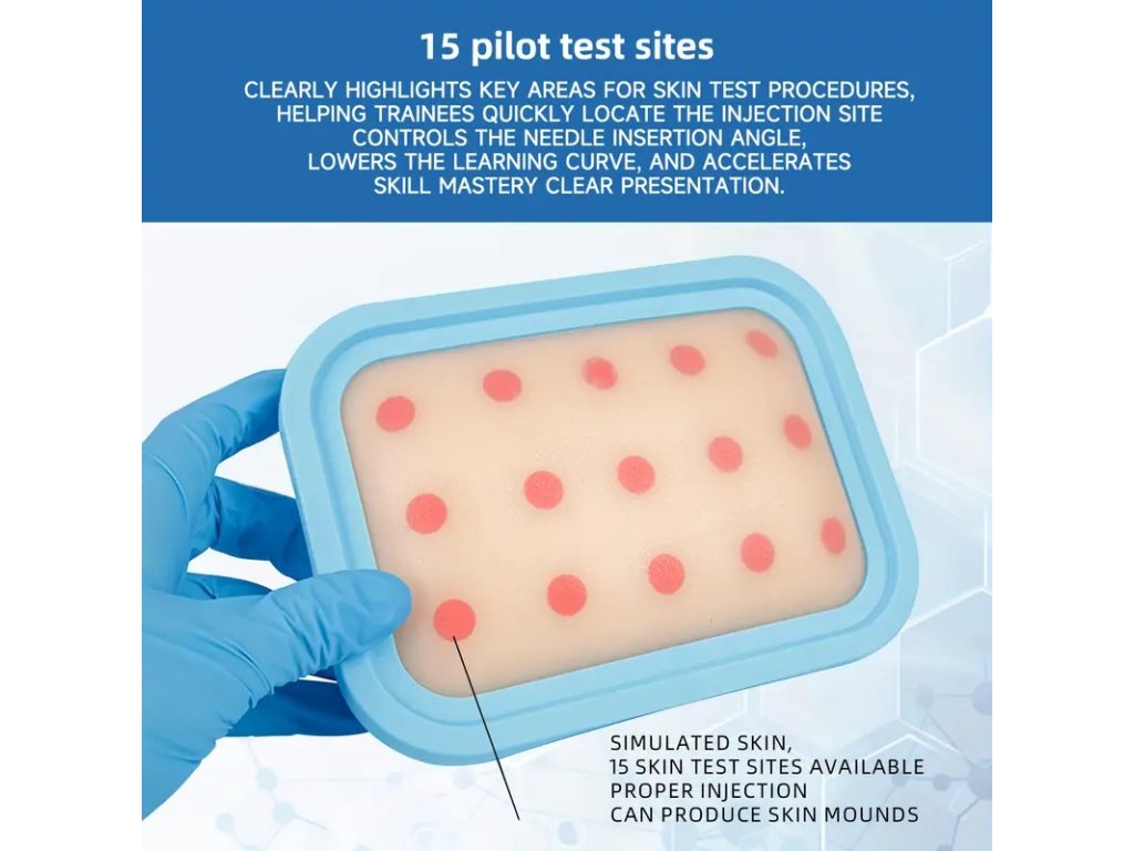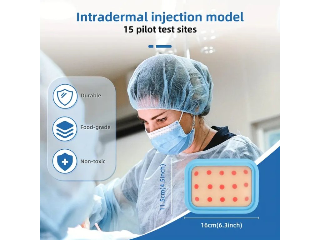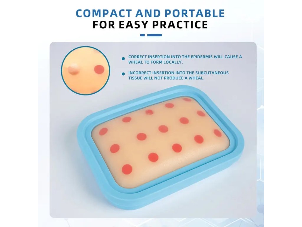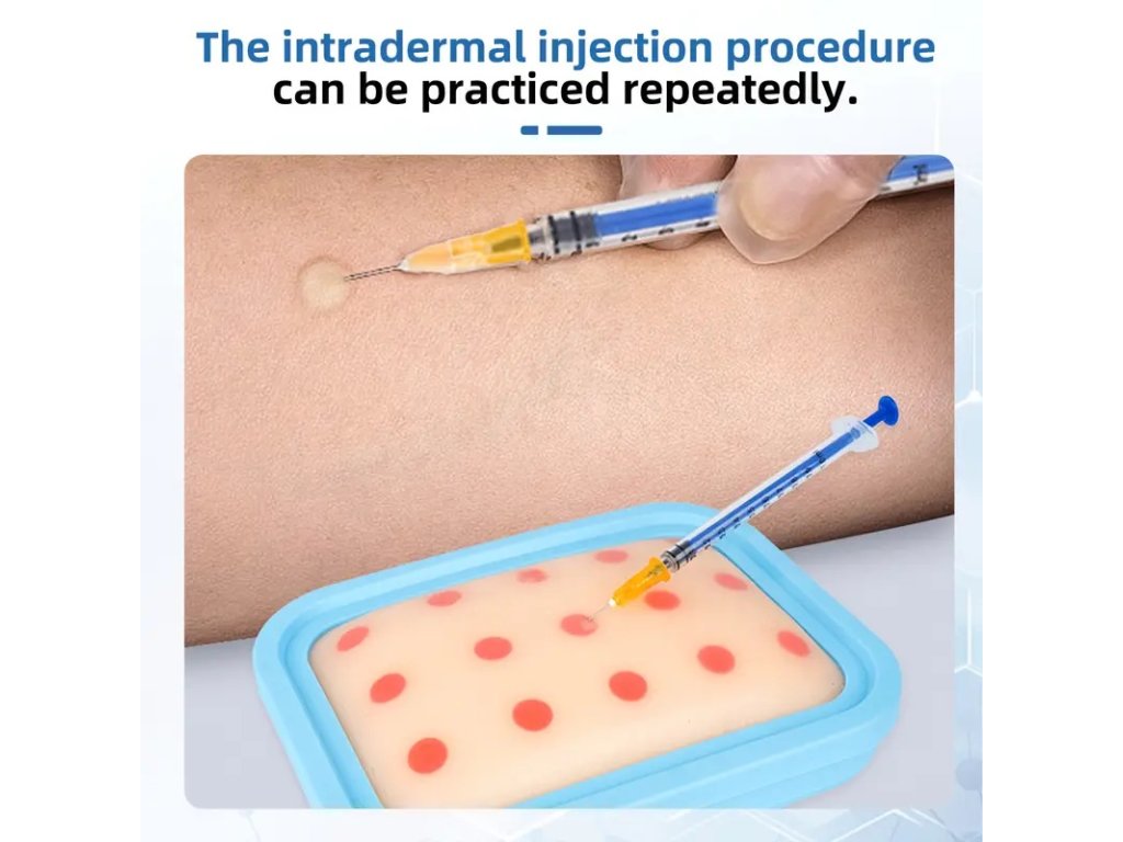 Tento realistický tréninkový simulátor z měkkého silikonu umožňuje bezpečný nácvik injekčních technik a testů kožních reakcí.