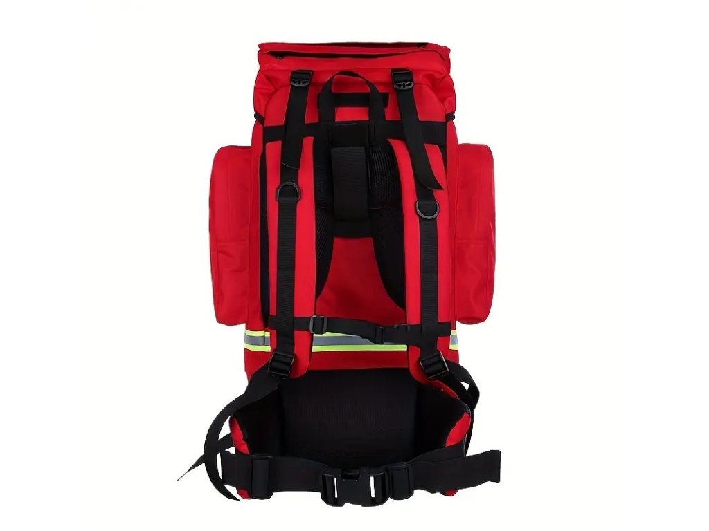 Zdravotnický batoh EMERGENCY – červený, velkokapacitní (Oxford, reflexní prvky)