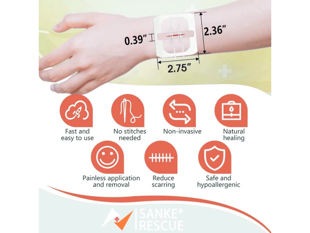 Nouzový stahovací obvaz Sanke Rescue představuje moderní, neinvazivní metodu uzavírání tržných a řezných ran bez nutnosti šití. Je ideální součástí lékárničky pro turistiku, kempování, sport i domácí použití.