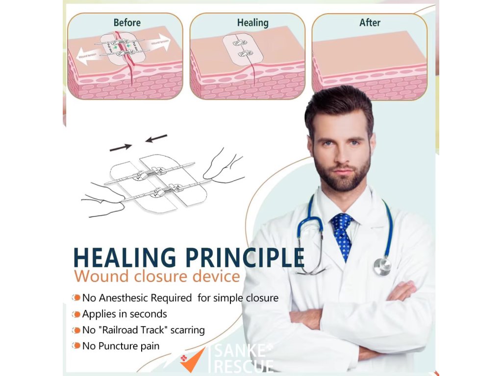 - Rychlé použití: Ránu uzavřete během několika sekund principem "zipu".